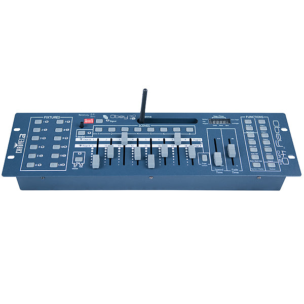 The Obey™ 40 D-Fi 2.4 is a small, but full-featured lighting controller with a built-in D-Fi™ transmitter so you can built a rig without long DMX cable runs! The Obey™ 40 D-Fi 2.4 works with any D-Fi™ compatible product and controls up 12 different types of lights. It stores scenes and chases for playback, and it operates lights “on the fly”. The stored scenes and chases are triggered by sound, or manually adjusted, to get just the right speed and fade time for your look. The Obey™ 40 D-Fi 2.4 is MIDI compatible and has dedicated fog and strobe controls. The Obey™ 40 D-Fi 2.4 is the perfect board for creating a dazzling light show without long cable runs! And it travels smartly in the CHAUVET® DJ CHS-30 Gear Bag.